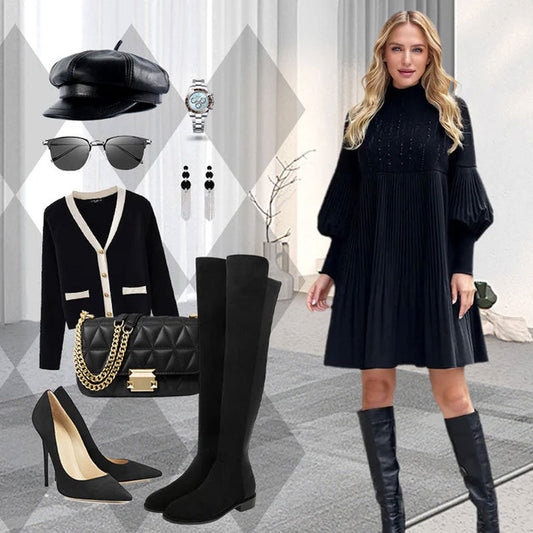 2025 Ny design✨Damklänning med ståkrage och lanternärm i plusstorlek🌈👗
