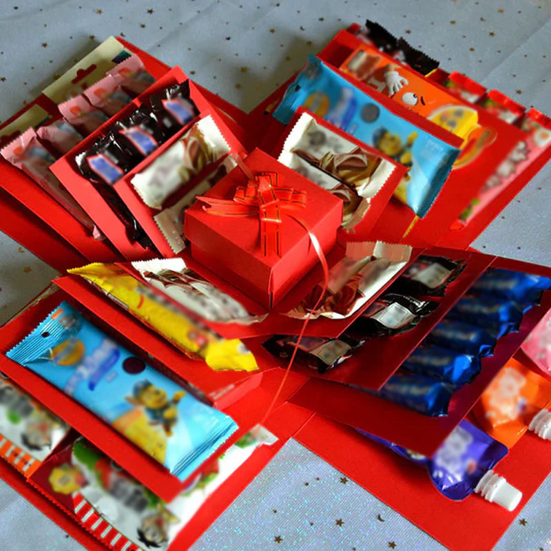 5-LAGER ÖVERRASKNINGSFÖRPACKNING - Presentförpackningen Surprise Explosion med fem lager har flera lager som vart och ett avslöjar en ny överraskning för en spännande öppningsupplevelse. Det rymliga paketet kan rymma stora gåvor eller flera mindre, vilket gör det perfekt för alla tillfällen.