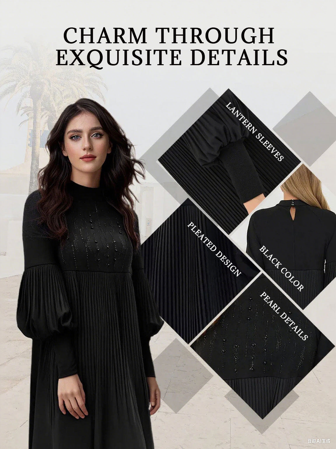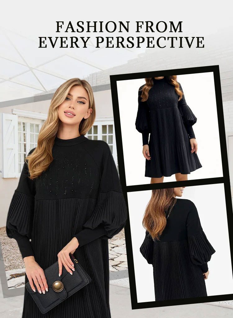 2025 Ny design✨Damklänning med ståkrage och lanternärm i plusstorlek🌈👗