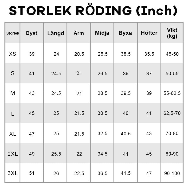 STORLEK (USA) | BYST | MIDJA | HÖFT | AXEL | ÖVERLÄNGD |