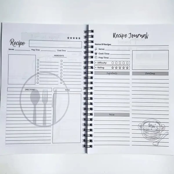 Säg adjö till spridda receptbitar och röriga skärmdumpar på mobilen – den hållbara spiralbundna receptboken "My Cookbook" är designad för matlagningsentusiaster som du. Tjocka sidor av hög kvalitet + fina illustrationer av köksredskap förvandlar receptinsamlingen till en konstnärlig köksritual.