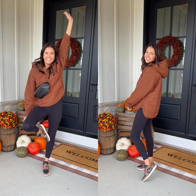 Åtdragbar, knappstängd och quiltad lättviktig pufferjacka för kvinnor - har söt huva, sidosprund, halv knapp, två praktiska sidofickor och en osynlig bröstficka, justerbara manschetter, enfärgad, lös passform, ett snyggt måste under höstens kyliga dagar