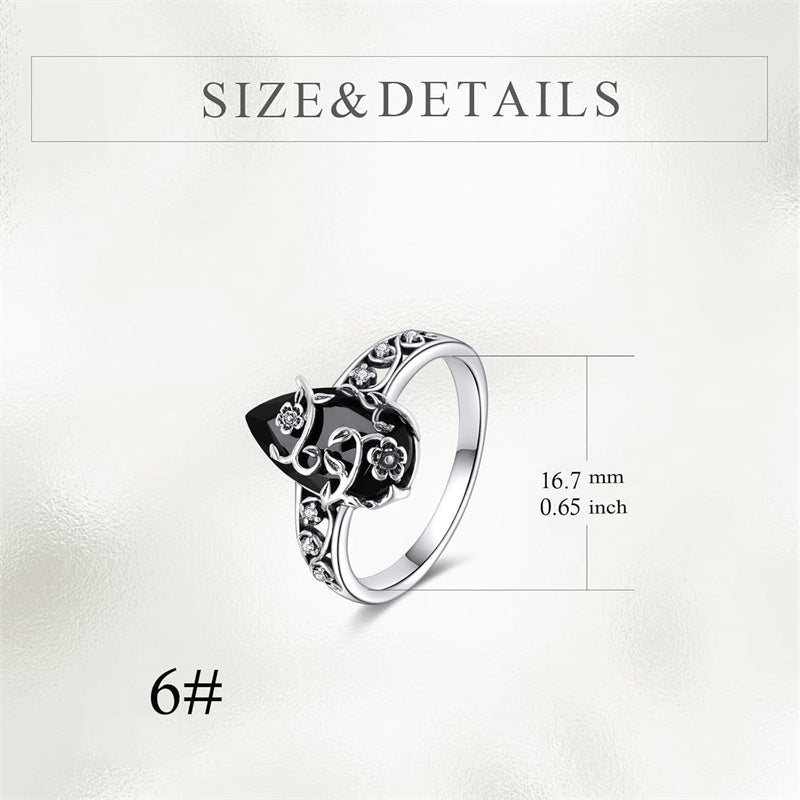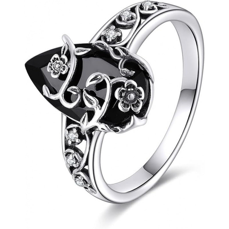 đ BOHEMISK VINTAGERING! đ Blommigt rankmönster, svart droppformad Ă€delsten och glittrande detaljer för tidlös elegansâš