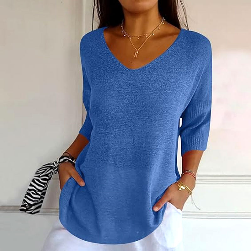 V-hals + sju fjĂ€rdedels Ă€rmdesign, förlĂ€nga halslinjen, visuell tunn UP UPđâš -