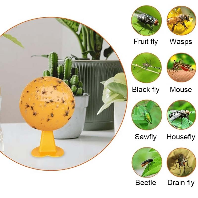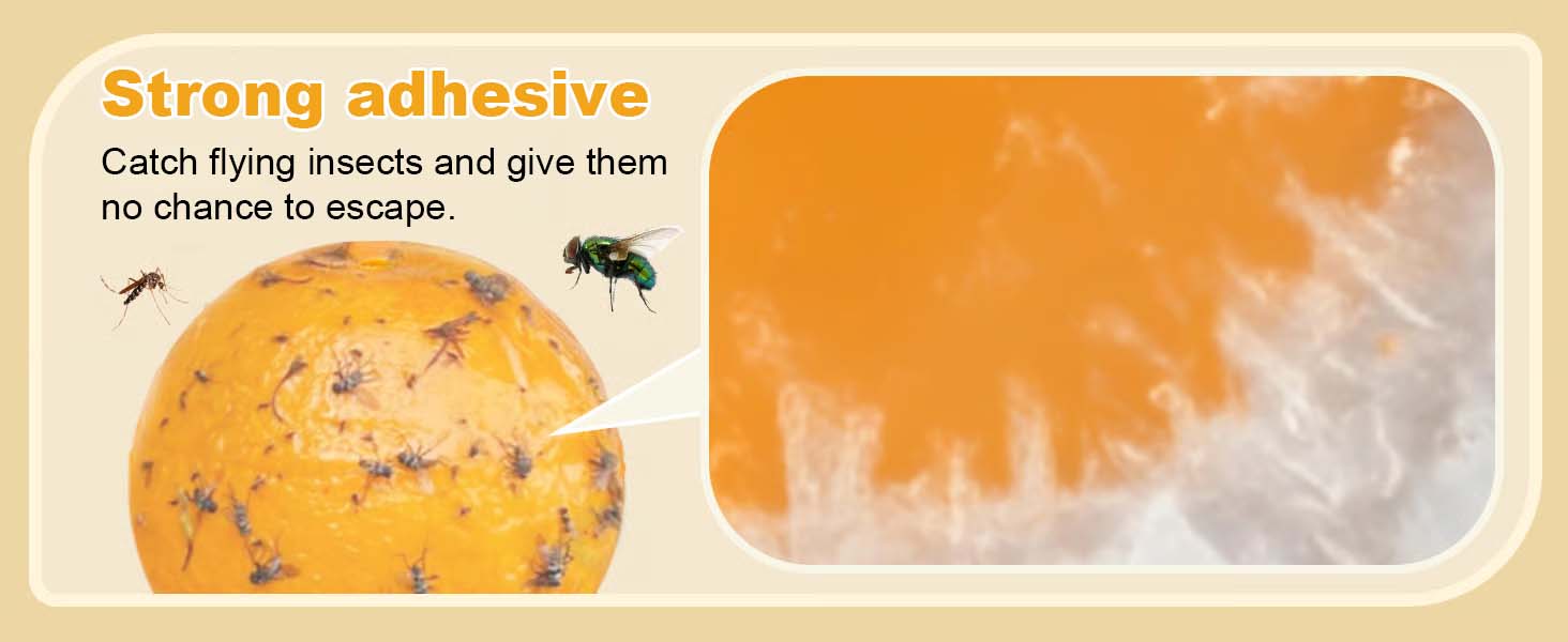 Högledande lim: Den senaste sfäriska designen ger 360° täckning och simulerar fruktens form och färg för att locka till sig insekter. Ett högkvalitativt lim med hög vidhäftningsförmåga hindrar skadedjuren från att fly.