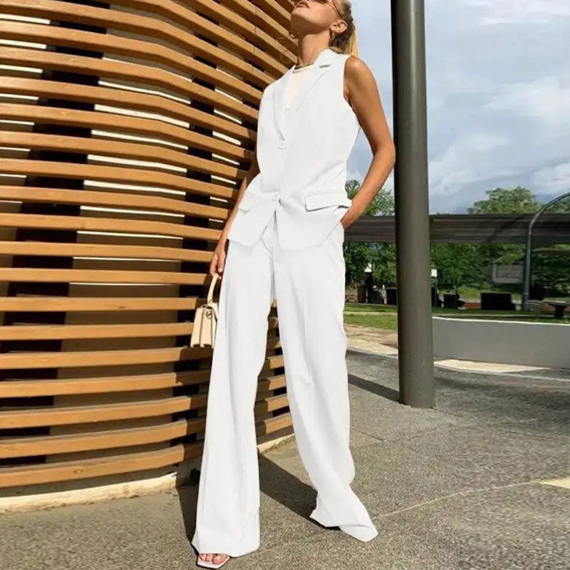 - 1 x Snyggt set med Àrmlös blazer och byxor med hög midja för kvinnor