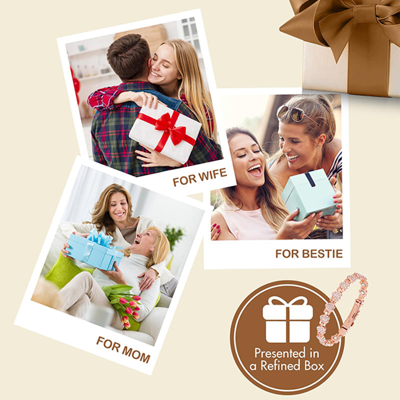 KLAR ATT GE BORT: Överraska dina nära och kära med ett lyxigt magnetiskt koppararmband för kvinnor som kombinerar stil och funktion. Det är en perfekt och omtänksam present till vänner, familj eller nära och kära.