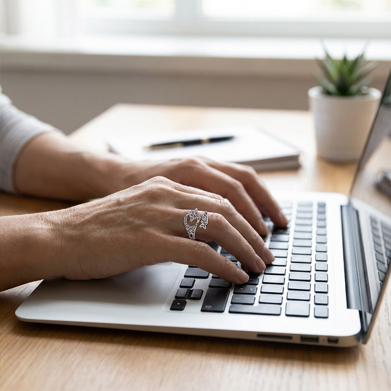 JUSTERBAR ÖPPEN DESIGN: Denna ring har en praktisk öppen design och kan justeras försiktigt för att passa de flesta fingerstorlekar perfekt. Detta garanterar en bekväm och säker passform utan behov av exakt storleksanpassning.