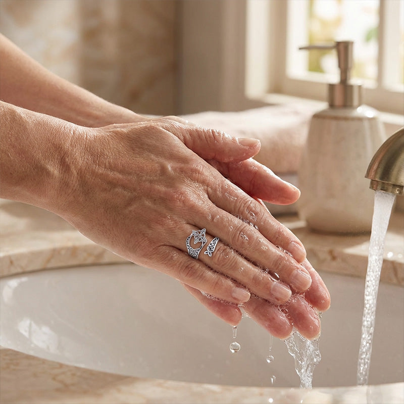 För att bibehålla glansen, undvik kontakt med starka kemikalier såsom parfym, lotion och klor.