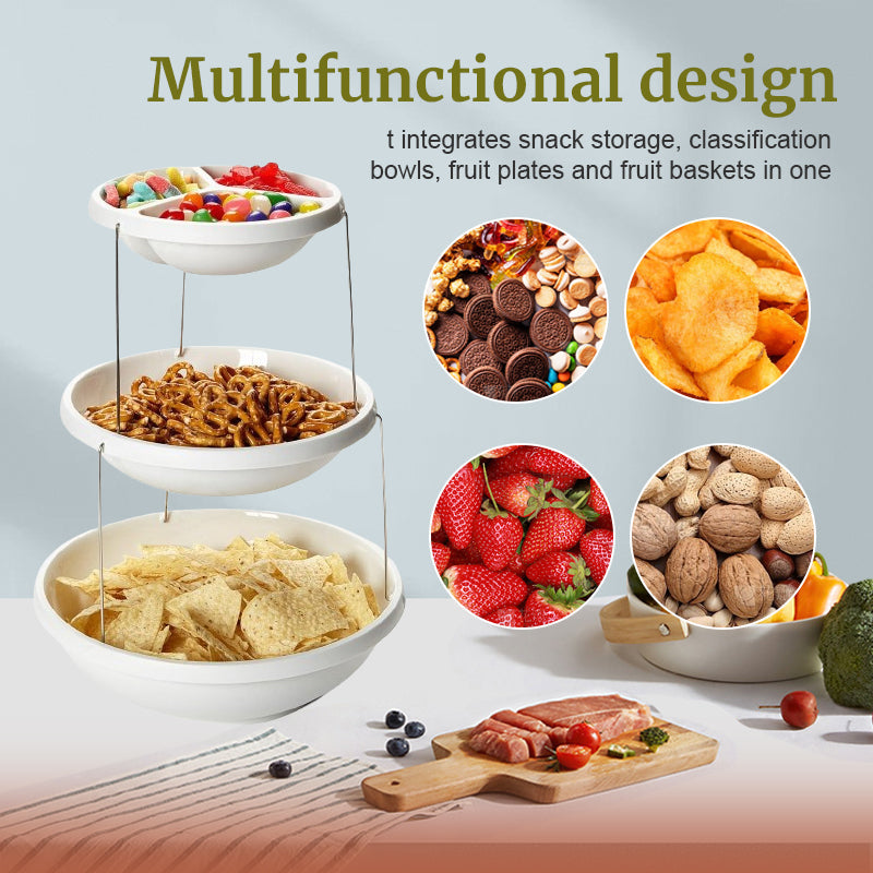 🍓 Multifunktionell design: Den integrerar snackförvaring, klassificeringsskålar, frukttallrikar och fruktkorgar i en, och den kan användas för flera ändamål för att möta dina olika behov.
