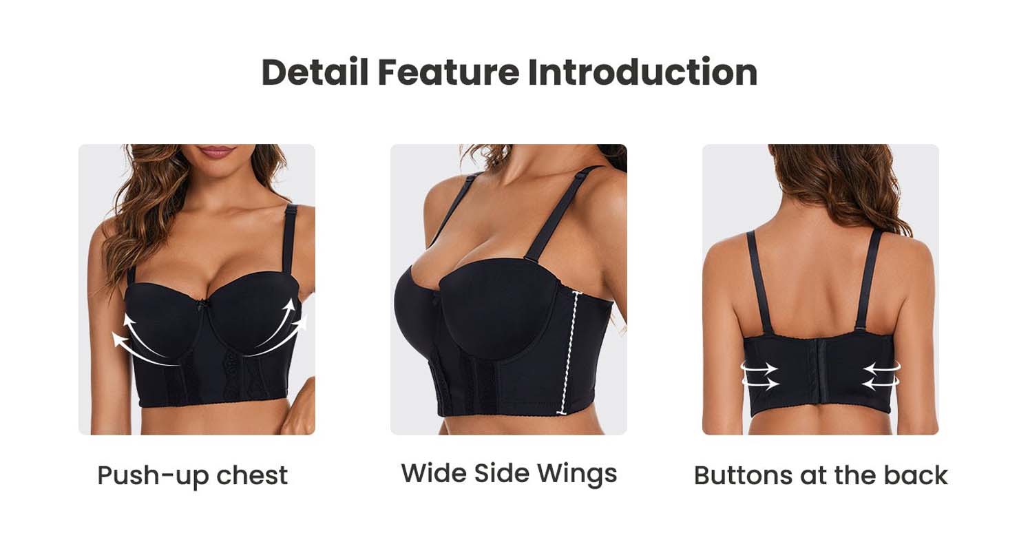 【STRAPLESS BRIDAL BRA AND BUSTIER BRA TOP】 Denna långsmala bh har rak rygg för att skapa utmärkt stöd för olika kroppsformer, med fåll som träffar vid den naturliga midjan; Denna axelbandslösa bh och bustier-stil är också ett utmärkt alternativ för speciella tillfällen som en brudbustier eller en sexig outwear-topp för att para ihop med jeans eller byxor.