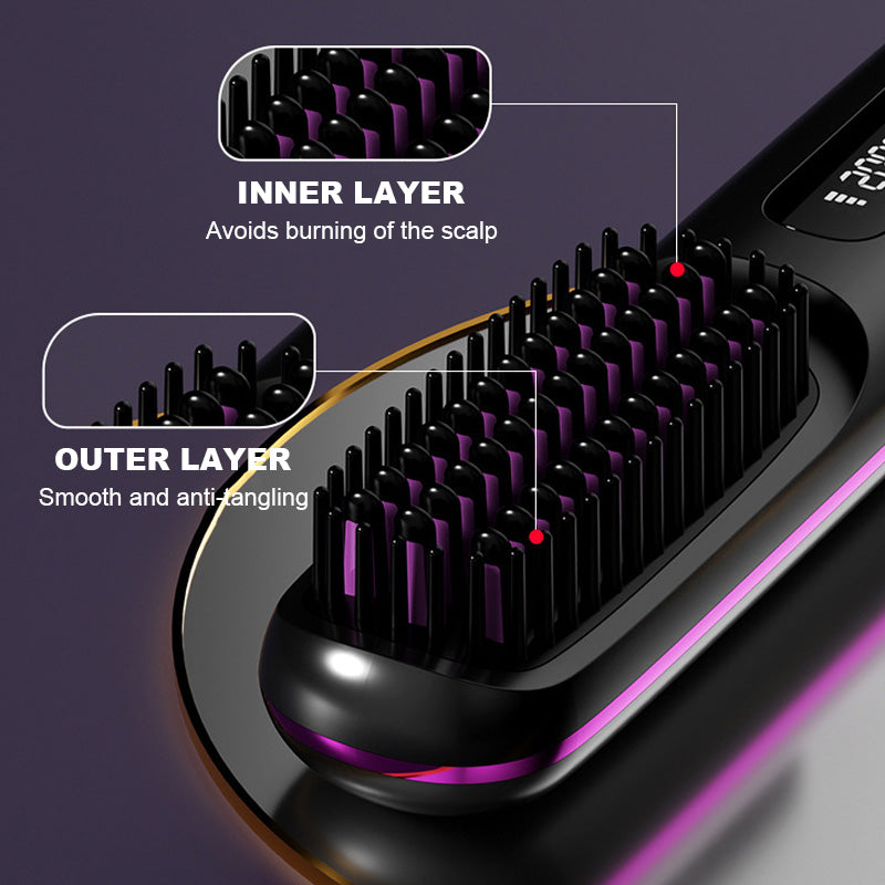 Få ett slätt hår av salongskvalitet med vår trådlösa plattång - utformad för att ge dig friheten att styla utan att vara bunden av sladdar. Kompakt, lätt och ultraportabel, perfekt för resor, snabba uppfräschningar eller förvandlingar på språng.